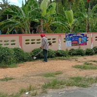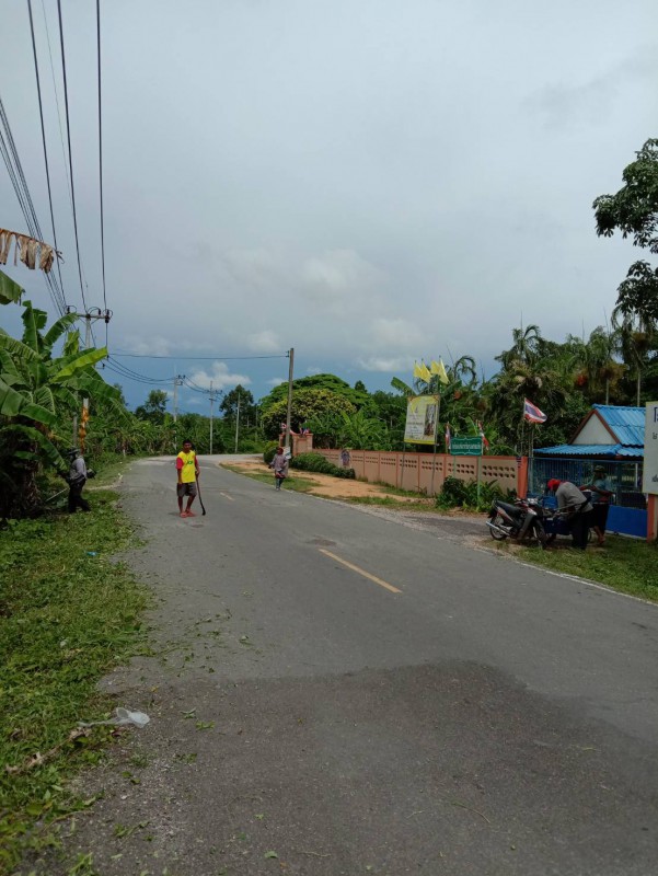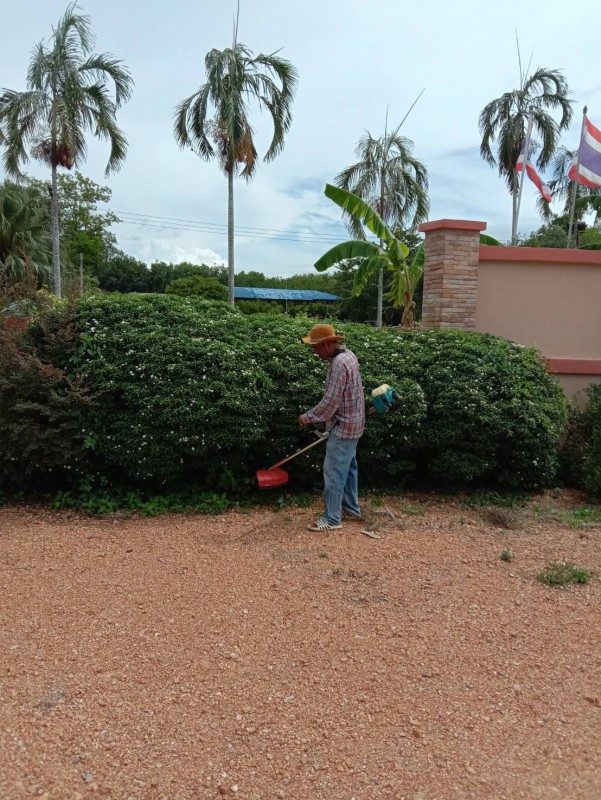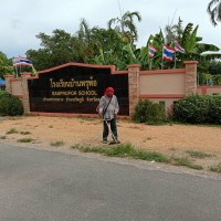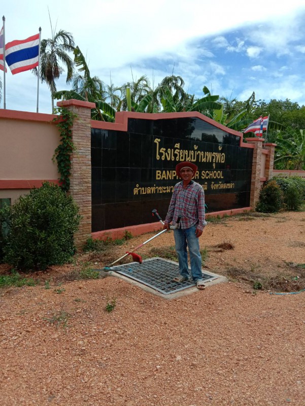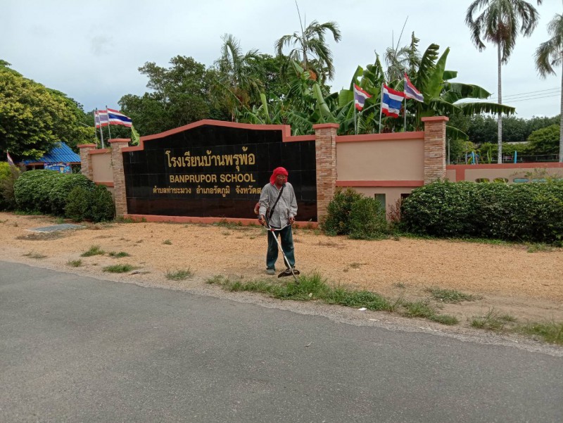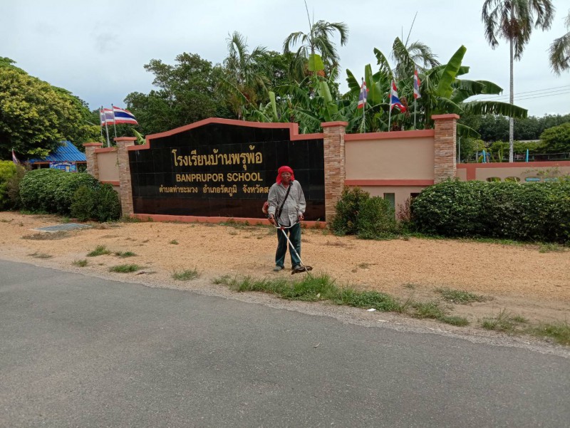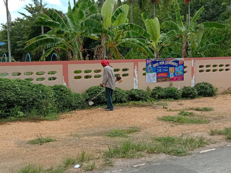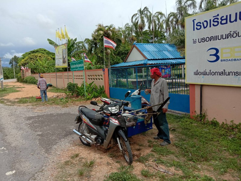กิจกรรมพัฒนาบริเวณหน้าโรงเรียน นำโดยผู้ใหญ่บ้าน ม.2 พรุพ้อและคณะ