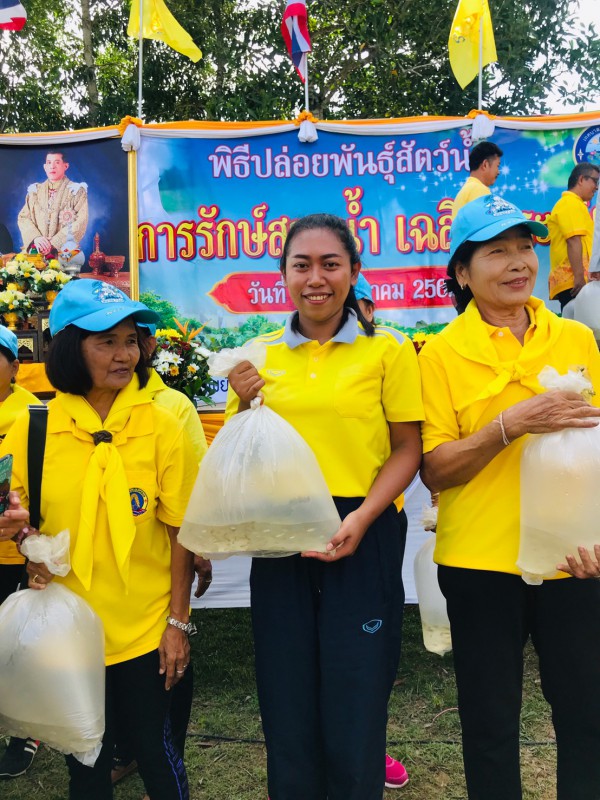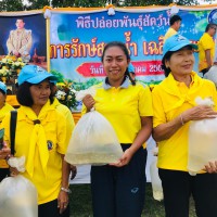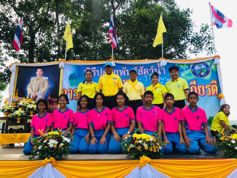 ผู้อำนวยการ ครูและคณะกรรมการสภานักเรียน ร่วมพิธีปล่อยพันธุ์สัตว์น้ำ การรักน้ำเฉลิมพระเกียรติ