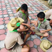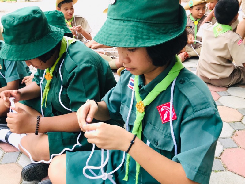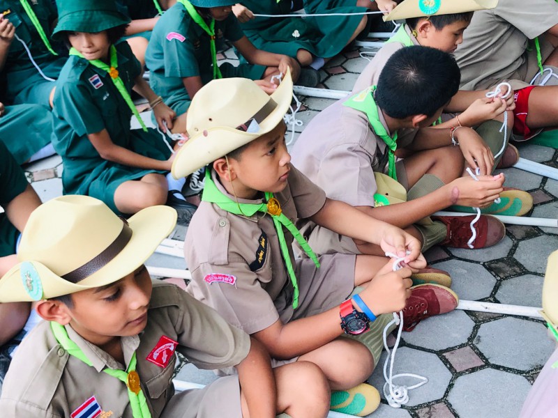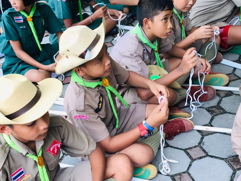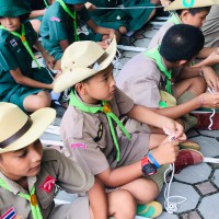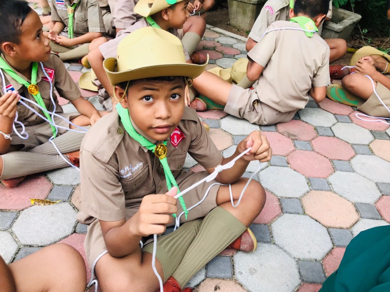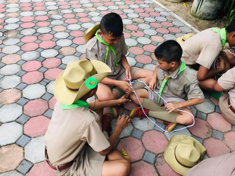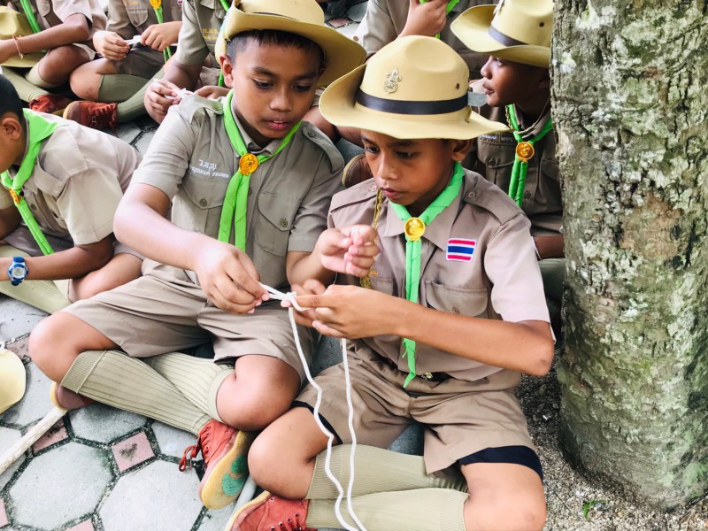 กิจกรรมลูกเสือ-เนตรนารี (คูหาโมเดล) ฐานที่ 2 เรื่อง เงื่อนและระเบียบแถว ณ โรงเรียนบ้านพรุพ้อ