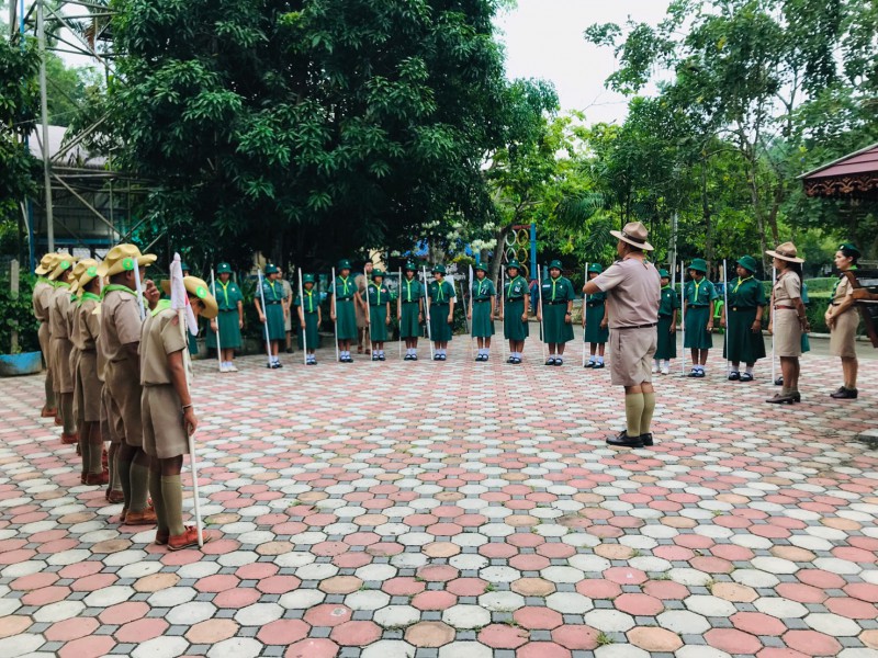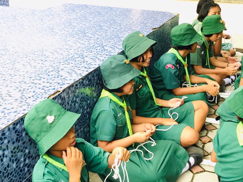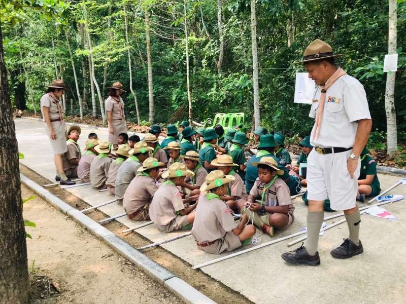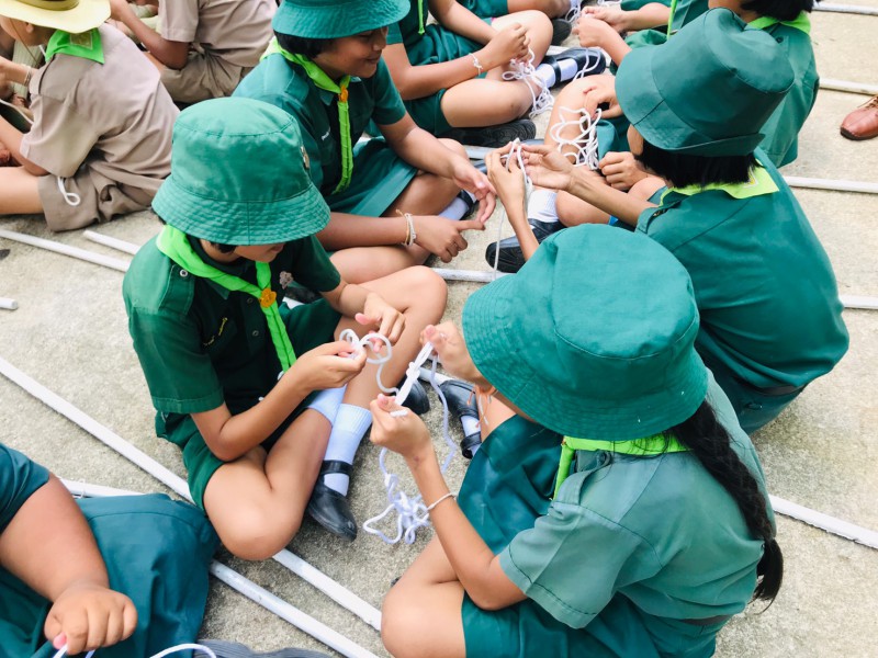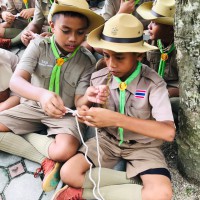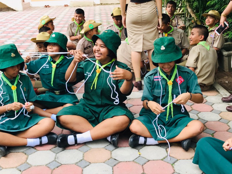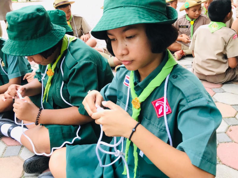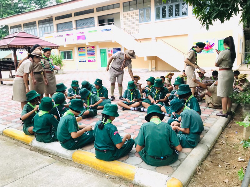 กิจกรรมลูกเสือ-เนตรนารี (คูหาโมเดล) ฐานที่ 2 เรื่อง เงื่อนและระเบียบแถว ณ โรงเรียนบ้านพรุพ้อ