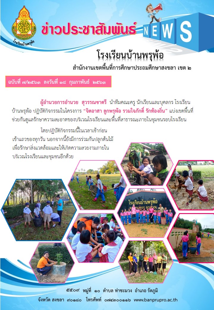 ผู้อำนวยการอำนวย สุวรรณชาตรี นำทีมคณะครู นักเรียนและบุคลกร โรงเรียนบ้านพรุพ้อ ปฏิบัติกิจกรรมในโครง