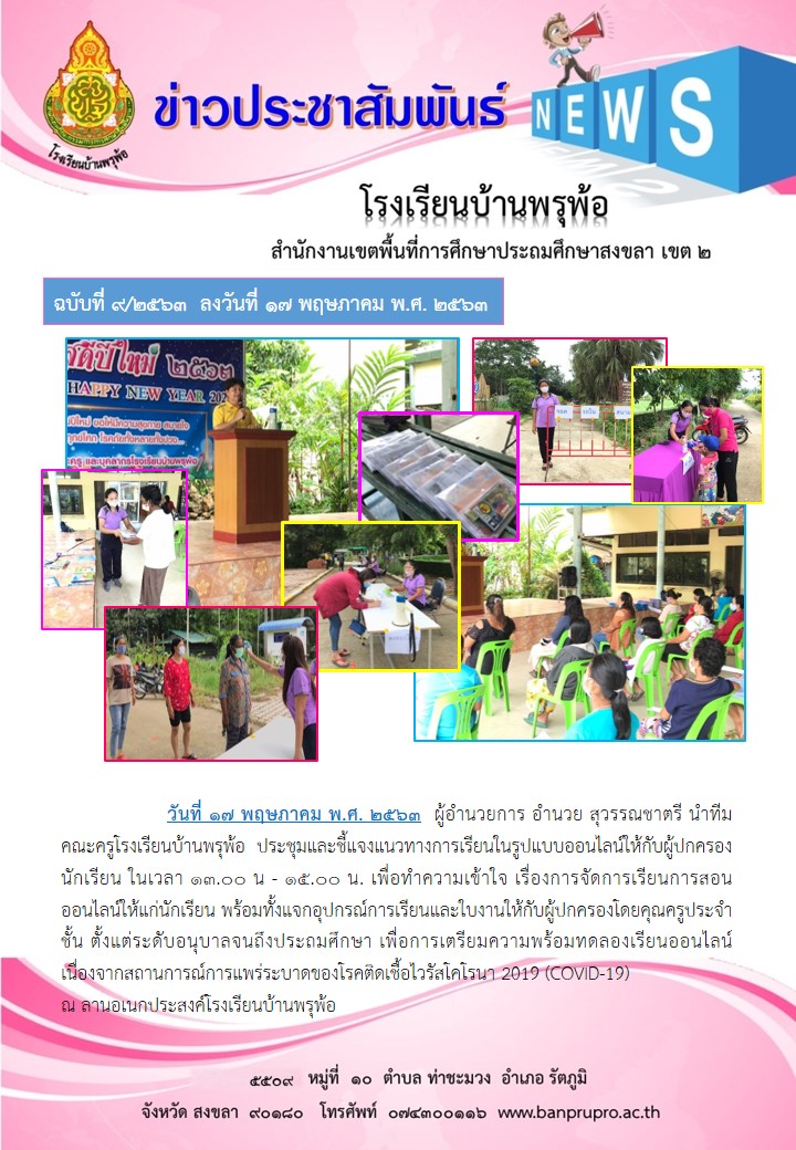 นายอำนวย สุวรรณชาตรี นำทีมคณะครูโรงเรียนบ้านพรุพ้อ ประชุมและชี้แจงแนวทางการเรียนรูปแบบออนไลน์