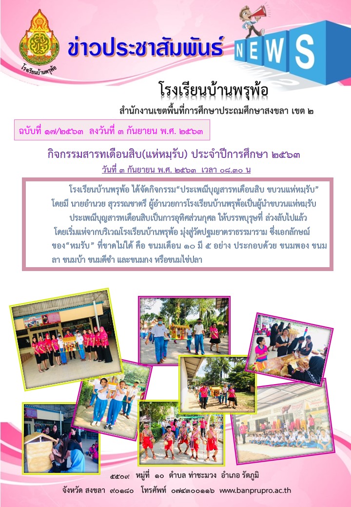 วันที่ ๓ กันยายน พ.ศ. 256๓ เวลา 0๘.๓0 น กิจกรรมสารทเดือนสิบ(แห่หมฺรับ) ประจำปีการศึกษา ๒๕๖๓
