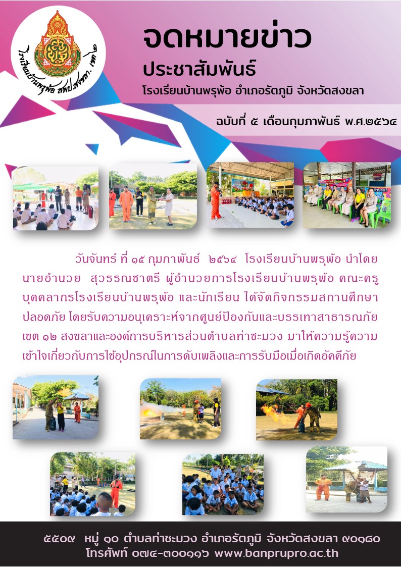 วันที่ ๑๕ กุมภาพันธ์ ๒๕๖๔ โรงเรียนบ้านพรุพ้อจัดกิจกรรม สถานศึกษาปลอดภัย