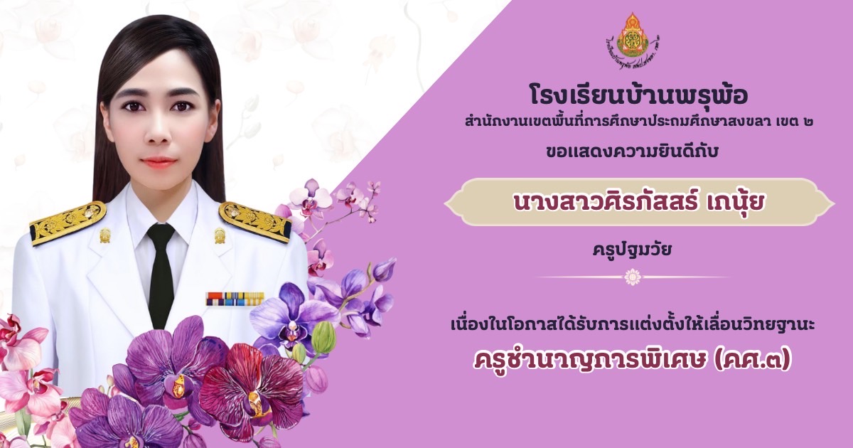 โรงเรียนบ้านพรุพ้อขอแสดงความยินดีกับคุณครูในการเลื่อนวิทยะฐาน 06 เม.ย. 68