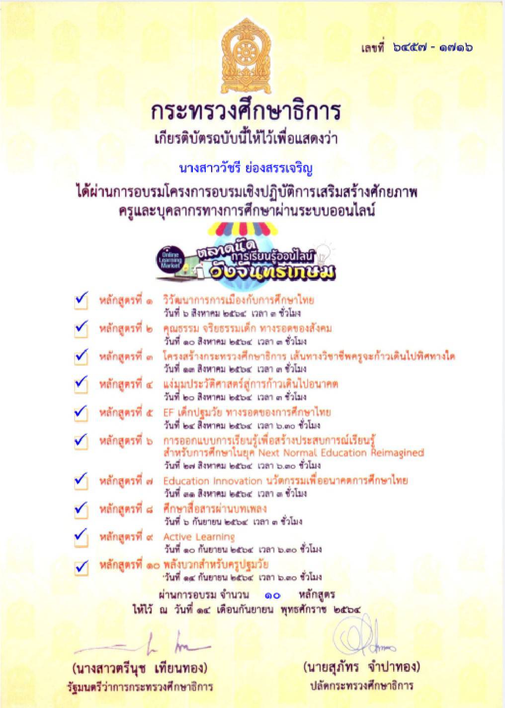 โครงการอบรมเชิงปฏิบัติการเสริมสร้างศักยภาพครูและบุคลากรทางการศึกษาผ่านระบบออนไลน์"ตลาดนัดการเรียนรู้วังจันทร์เกษม"